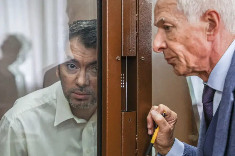 Подпись к фото, Григорий Мельконьянц с адвокатом Михаилом Бирюковым