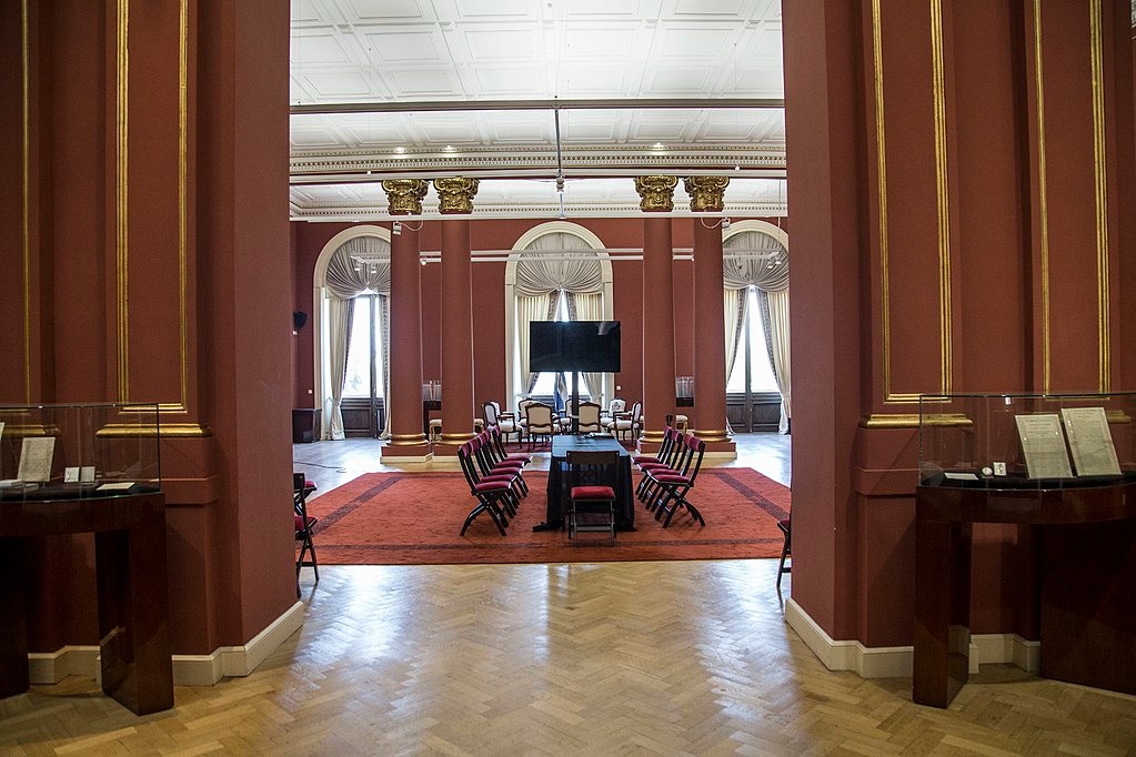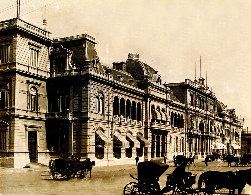 Строительство нынешнего Дома правительства началось в 1873 году, когда декретом было предписано возвести здание почты и телеграфа на углу улиц Балькарсе и Иполито Иригойен.