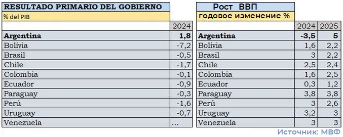 Вопреки тому, что происходит в южноамериканских странах в целом, которые все регистрируют экономический рост в текущем году, МВФ прогнозирует сокращение ВВП Аргентины примерно на 3,5 процента, но прогнозирует рост примерно на 5 процентов в 2025 году.