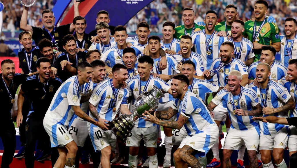 CпортАргентина одолела Колумбию и стала двукратным чемпионом Америки!15.07.202415.07.2024 Сборная Аргентины победила в дополнительное время, благодаря великолепному голу Лаутаро Мартинеса, и стала самой успешной командой континентального турнира. 🏆 #CopaAmérica 🎥 ¿Campeones? Nono, Bicampeones 🙌pic.twitter.com/nVjbkSqgDE— 🇦🇷 Selección Argentina ⭐⭐⭐ (@Argentina) July 15, 2024 Сборная Аргентины чемпионы Кубка Америки 2024 Источник: социальная сеть Х @Argentina спорт, футбол