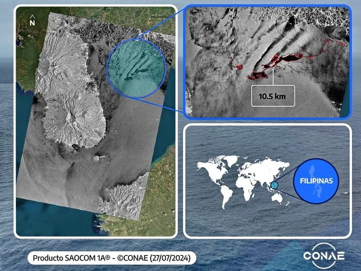 Спутник SAOCOM 1A, входящий в группировку SAOCOM 1 компании CONAE, сообщил на этой неделе о разливе нефти в Манильском заливе (Филиппины), что вызвало тревогу и позволило предотвратить его распространение.