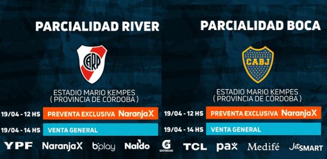 Билеты для Бока. Продажа началась в 12 часов дня в эту пятницу, исключительно для клиентов Naranja X. Затем, с 14:00, она была распространена и на других пользователей.