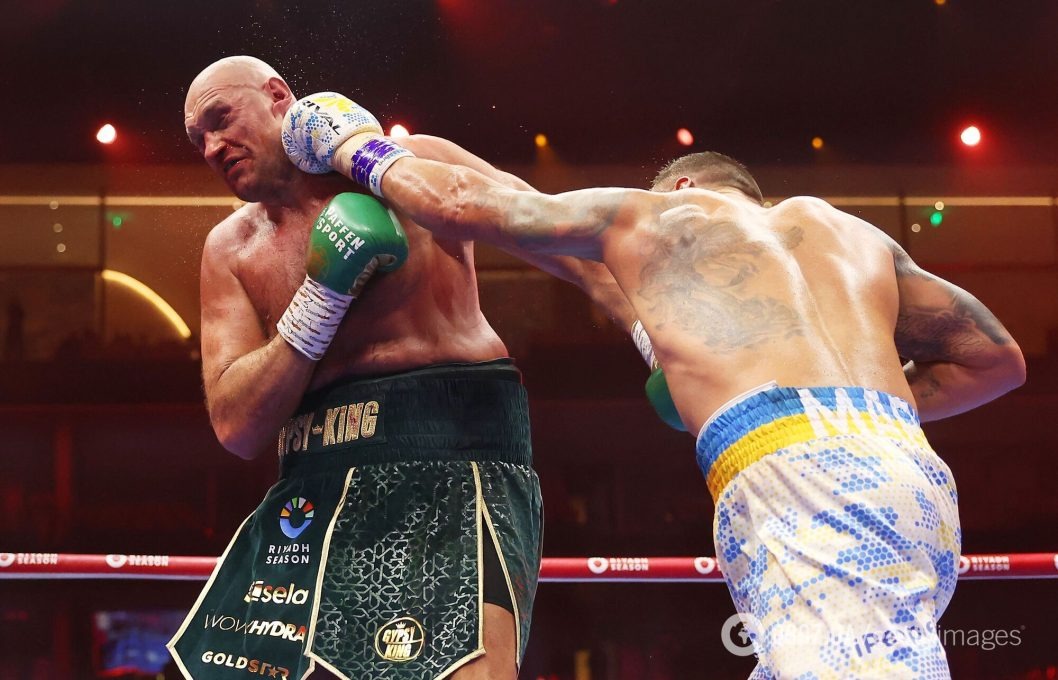 На арене Kingdom Arena в Эр-Рияде, Саудовская Аравия, украинец устроил британцу настоящее избиение и был на грани нокаута в девятом раунде.