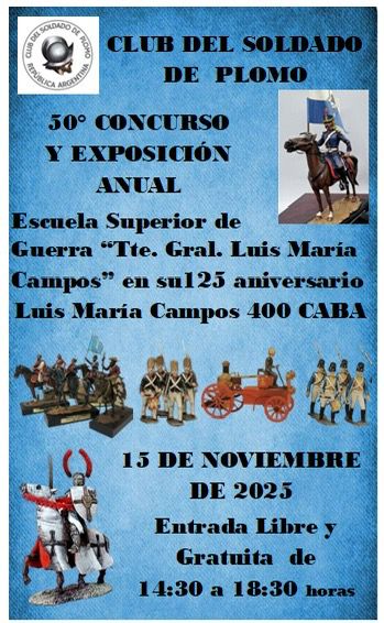 Высшая военная школа имени Генерала Луиса Марии Кампос (Av. Luis María Campos 400, C.A.B.A.) станет местом проведения 50-го ежегодного конкурса и выставки макетов, организованного Клубом солдатиков.