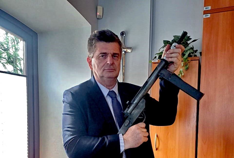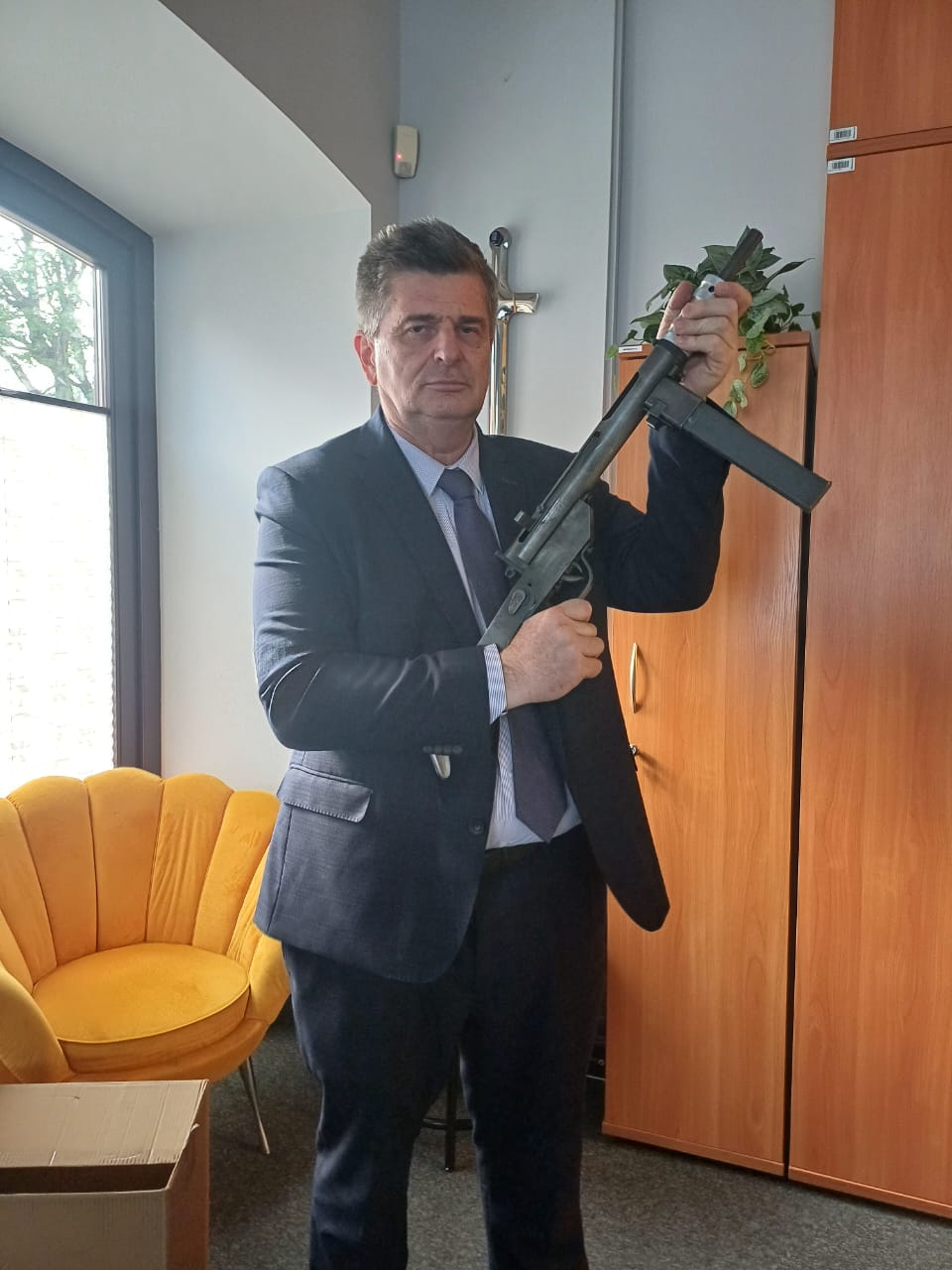 Автор статьи инженер Андрес Чованчак с пистолетом-пулеметом Błyskawica