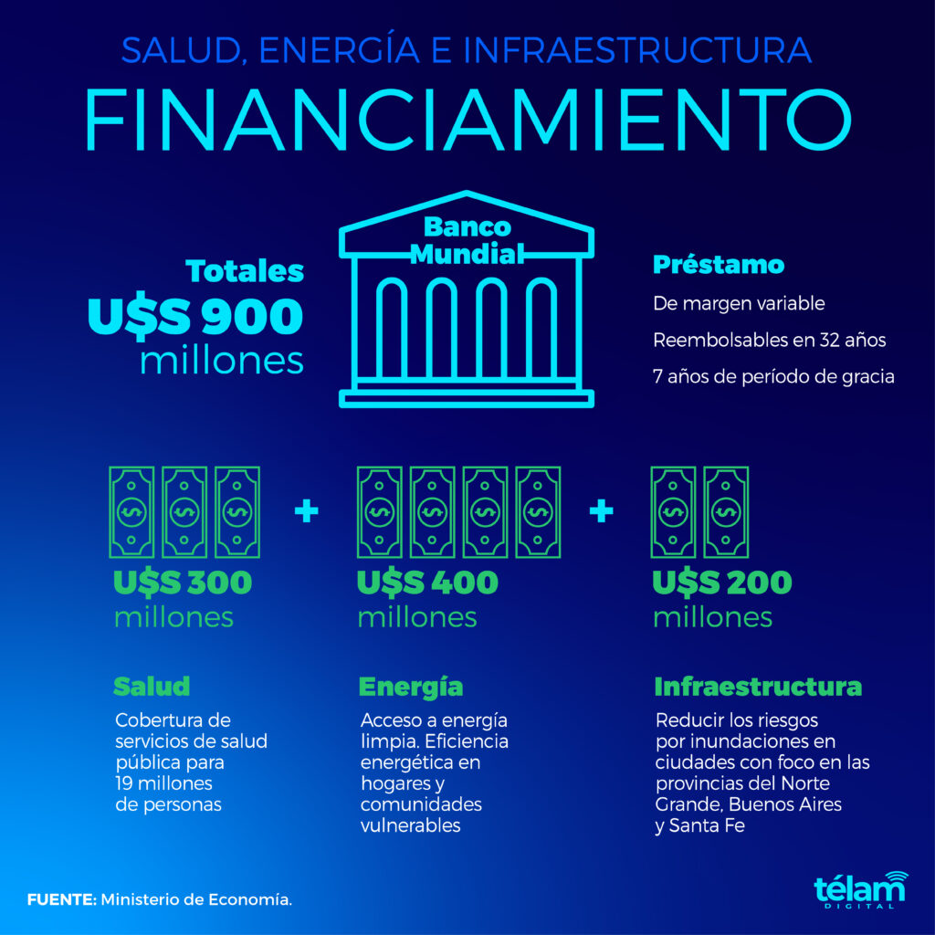 Совет директоров Всемирного банка сегодня утвердил три транша финансирования для Аргентины на общую сумму около 900 млн долларов США, из которых 400 млн долларов США будут инвестированы в расширение доступа к экологически чистой энергии и продвижение мер по повышению энергоэффективности в уязвимых домах и общинах, 300 млн долларов США — для увеличения охвата населения услугами здравоохранения и 200 млн долларов США на снижение рисков наводнений в разных городах страны.