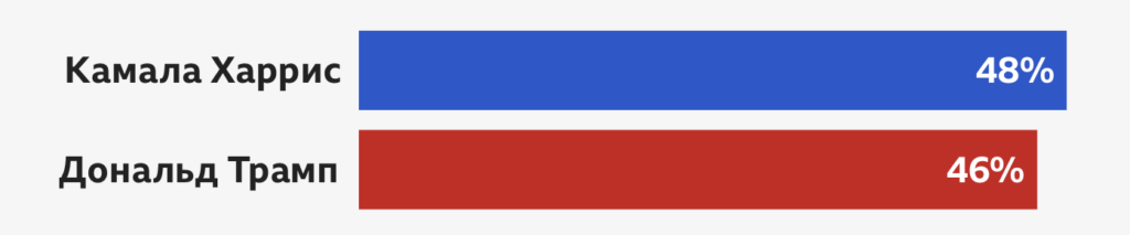 Но после ее номинации ситуация изменилась, и опросы показали небольшое преимущество Харрис над своим соперником; оно сохраняется и по сей день.