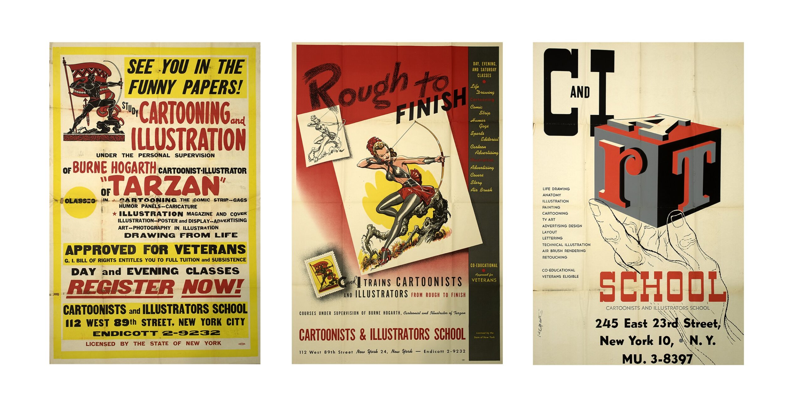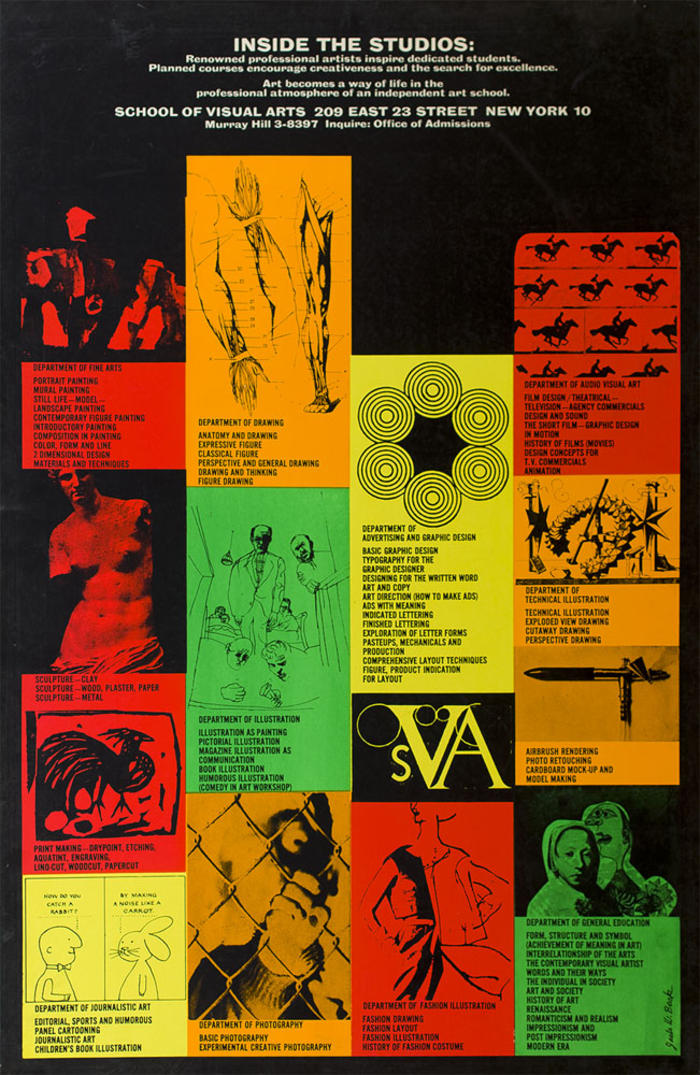Сайлас Родс и Берн Хогарт, художник, наиболее известный по рисунку комикса «Тарзан», основали SVA в 1947 году. Тогда она называлась «Школа карикатуристов и иллюстраторов» и была ориентирована в первую очередь на ветеранов, вернувшихся со Второй мировой войны, большинство из которых учились на вечерних курсах, чтобы претендовать на лучшую работу в сфере рекламы и издательского дела.