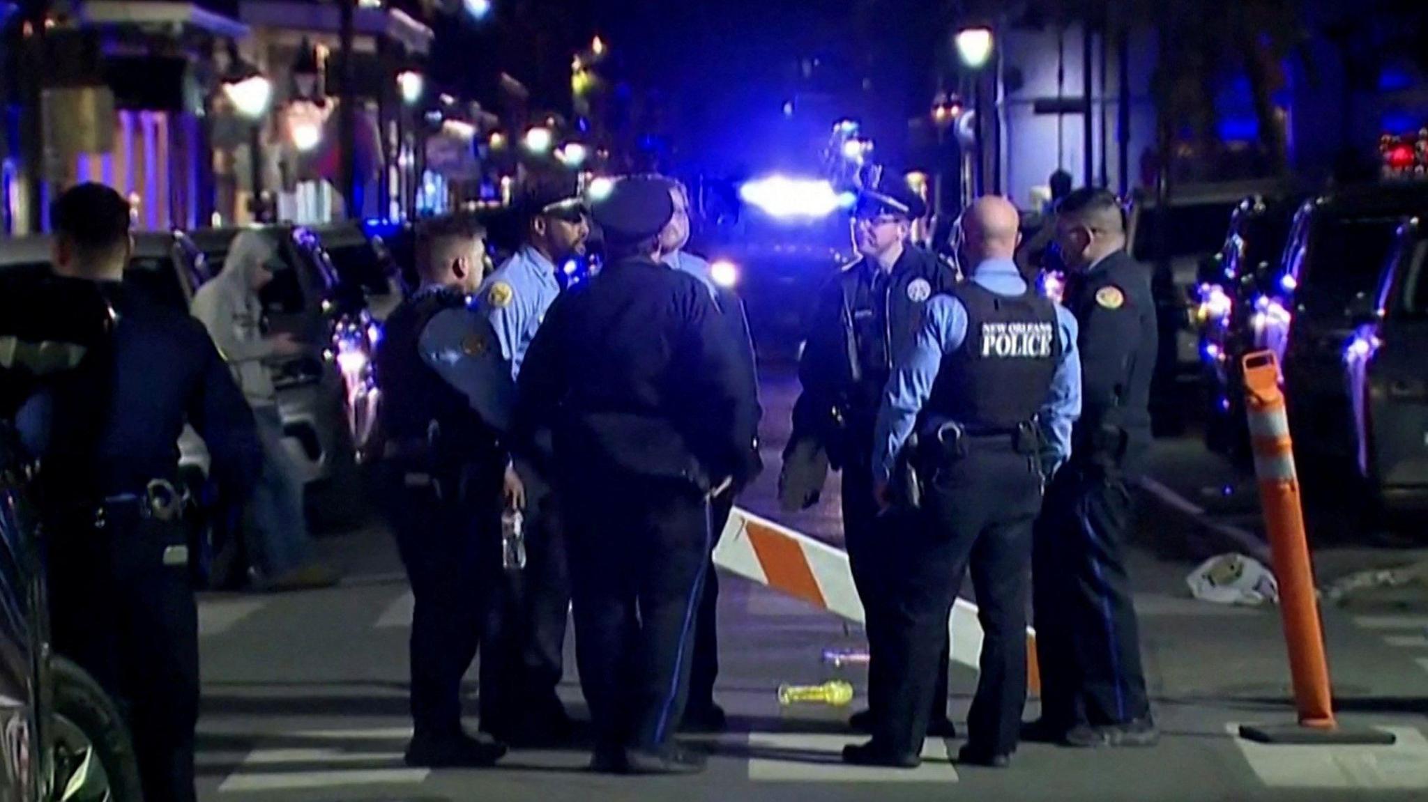 Автомобиль на огромной скорости врезался в толпу празднующих Новый год на Бурбон-стрит, после чего водитель вышел из машины и начал стрелять. Полиция открыла ответный огонь. В ходе перестрелки ранения получили два сотрудника полиции.