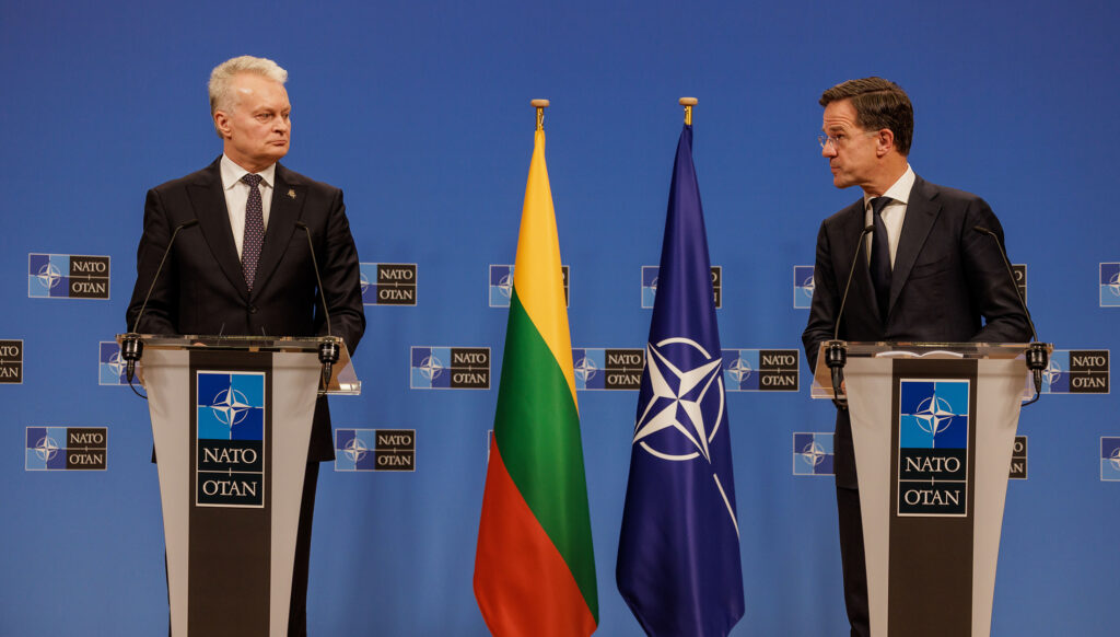 Генеральный секретарь поблагодарил Литву за значительный вклад этой страны в НАТО и общую безопасность, в том числе за ее ведущую роль в расходах на оборону и усилия по увеличению оборонного производства. Он отметил, что Литва «инвестирует в оборону более 3% ВВП», и добавил, что эта цифра «скоро вырастет до 3,5%». Г-н Рютте также упомянул о недавнем соглашении между Литвой и концерном Rheinmetall об открытии завода по производству 155-мм артиллерийских снарядов в Байсогале, которое, по его словам, «подчеркивает ваше стремление нарастить оборонное производство». В Литве размещен передовой отряд сухопутных войск НАТО под командованием Германии, который в соответствии с планами к 2027 году будет увеличен до уровня бригады, где будут служить около 4800 военных. «Это значительно укрепит наши силы сдерживания и обороны на восточном фланге нашего Союза», — отметил Генеральный секретарь Рютте.