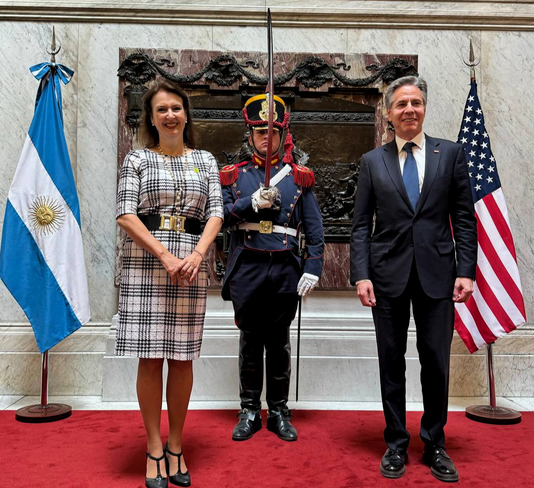МОДЕРАТОР: (Через переводчика) Доброе утро. В зале для прессы Дома правительства Аргентины после встречи с президентом страны Хавьером Милей, министром иностранных дел Аргентины Дианой Мондино и государственным секретарем США Энтони Блинкеном состоится пресс-конференция.