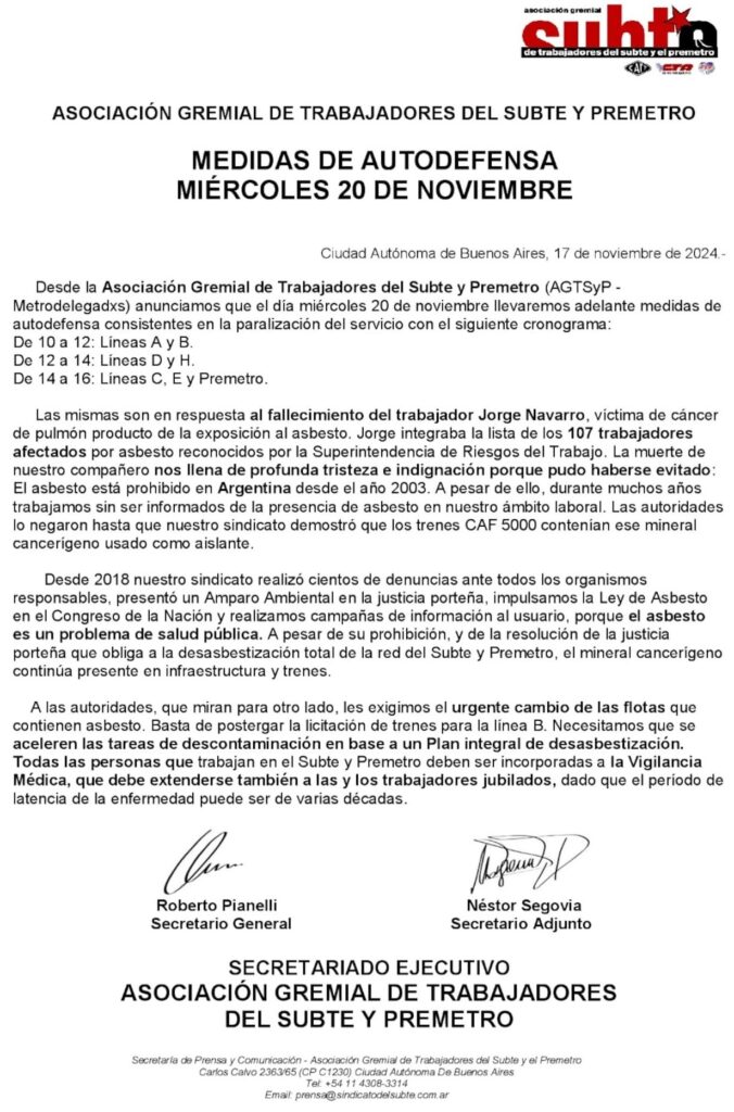 #Забастовка #Метро #БуэносАйрес #Асбест #Права #Здоровье #Транспорт #Экология #Законодательство #ОбщественныйТранспорт #AGTSYP #Профсоюз