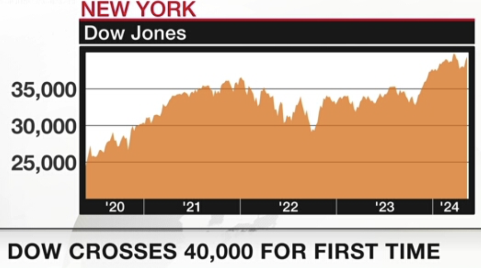 Промышленный индекс Dow Jones впервые преодолел отметку в 40.000 пунктов в ходе торгов на Нью-Йоркской фондовой бирже