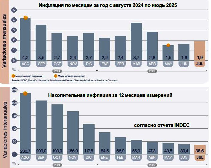 Индекс потребительских цен (ИПЦ) в июле вырос на 1,9% и за последние двенадцать месяцев составил 36,6%, как сообщил в среду Национальный институт статистики и переписи населения (Indec).