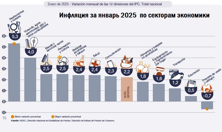 На уровне категорий регулируемые цены (2,6%) возглавили рост, за ними следует базовый ИПЦ (2,4%), а сезонные цены выросли на 0,6%, — пояснили в Indec.