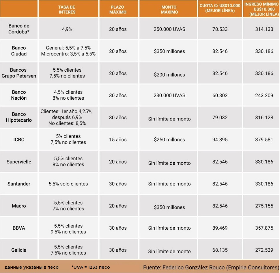 Первоначальный взнос по этому кредиту составляет 450 372 песо, а для выполнения требований банка необходим ежемесячный доход в размере 1 801 488 песо.