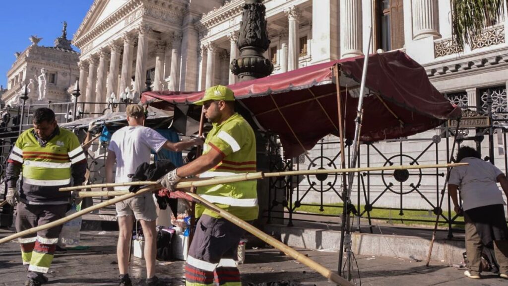Правительство Буэнос-Айреса выселило палаточный городок, который движение Tercer Malón de la Paz в течение трех месяцев существовал на углу здания национального Конгресса в знак протеста против конституционной реформы в провинции Хухуй.