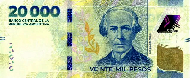 Новая банкнота 20 000 песо в Аргентине, с изображением Хуана Баутисты Альберди на лицевой стороне, вводится в обращение с рядом мер безопасности для предотвращения подделки банкнот. Городская полиция, а именно Научная полиция, предоставила населению рекомендации по обеспечению безопасности.