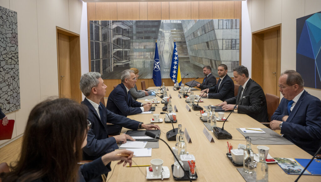 Генеральный секретарь высоко оценил недавний прогресс Боснии и Герцеговины на пути к членству в Европейском союзе и приветствовал усилия по модернизации вооруженных сил страны для еще более тесного сотрудничества с НАТО. При этом он выразил обеспокоенность в связи с сепаратистской политикой и риторикой раскола, назвав ее «безрассудной и опасной» и подрывающей с таким трудом достигнутый прогресс. Он подчеркнул, что «все политические лидеры должны работать вместе, чтобы сохранить единство и защитить национальные институты», добавив, что «это ключ к миру и безопасности в стране, а также к стабильности на Западных Балканах».