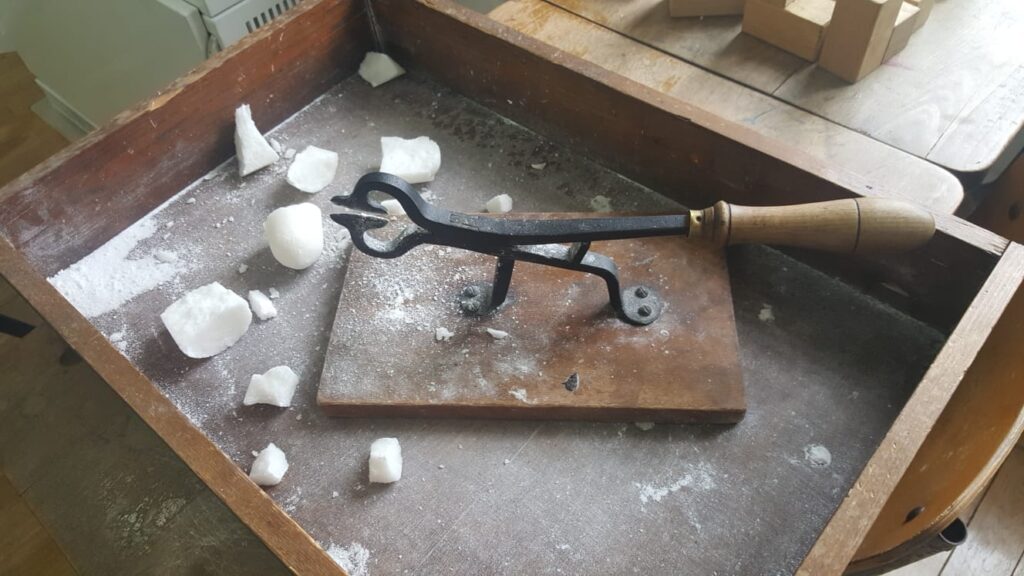 – В те времена производились кубики двух размеров. Те, что поменьше, походили на сегодняшние, а у сахарных кубиков покрупнее грань была длиной восемнадцать миллиметров. Продавались не только белые, но и красные кубики. Мы точно не знаем, чем они были окрашены, однако предполагаем, что свекольным или черничным соком. В любом случае, использовали, конечно, какой-то натуральный краситель,