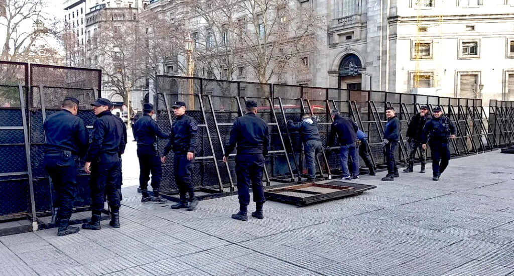 Администрация огородила фасад Каса Росада накануне акции протеста, организованной социальными и профсоюзными движениями.