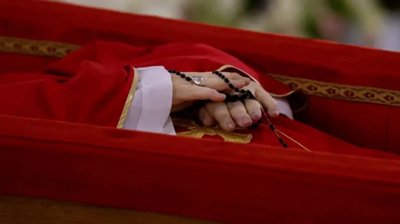 В своем завещании папа Франциск распорядился, чтобы его похороны проходили менее торжественно, чем обычно, и были больше похожи на прощание с обычным христианином. Так, его тело выставят в соборе не на катафалке вне гроба, а в гробу со снятой крышкой.