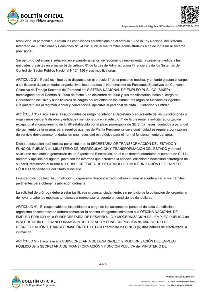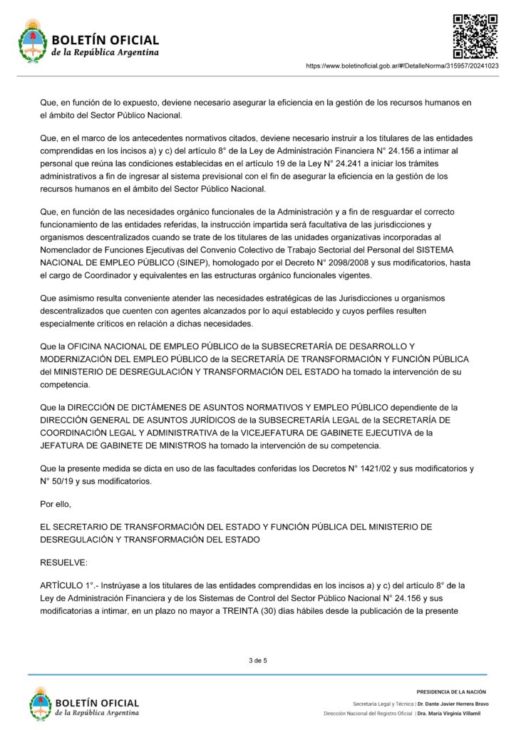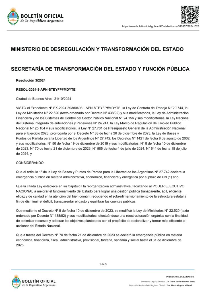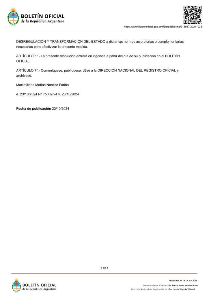 Эта мера стала официальной благодаря публикации в Официальном Бюллетене постановления 3/2024 Министерства дерегулирования и преобразования государства, возглавляемого Федерико Штурценеггером.
