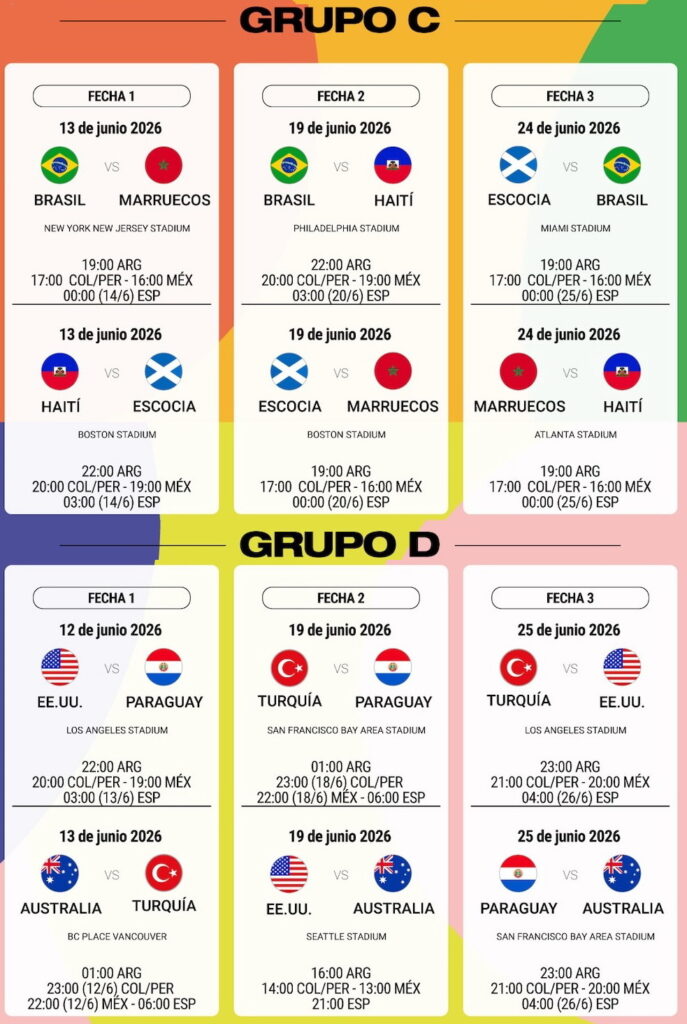 Матч-открытие состоится 11 июня 2026 года в 16:00 по аргентинскому времени на Стадионе города Мехико (Estadio Ciudad de México). В нём сыграют хозяйка турнира Мексика и ЮАР в рамках группы A. Финальный матч пройдёт 19 июля в 16:00 на Стадионе Нью-Йорк Нью-Джерси (MetLife Stadium) в Ист-Ратерфорде, США.
