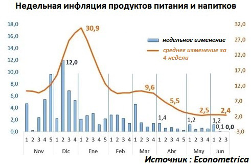 Цены на продукты питания и напитки не изменялись в течении третьей недели июня, зафиксировав 0% инфляции, согласно исследованию консалтинговой компании Econométrica достигнут лучшего показателя за последние 30 лет.