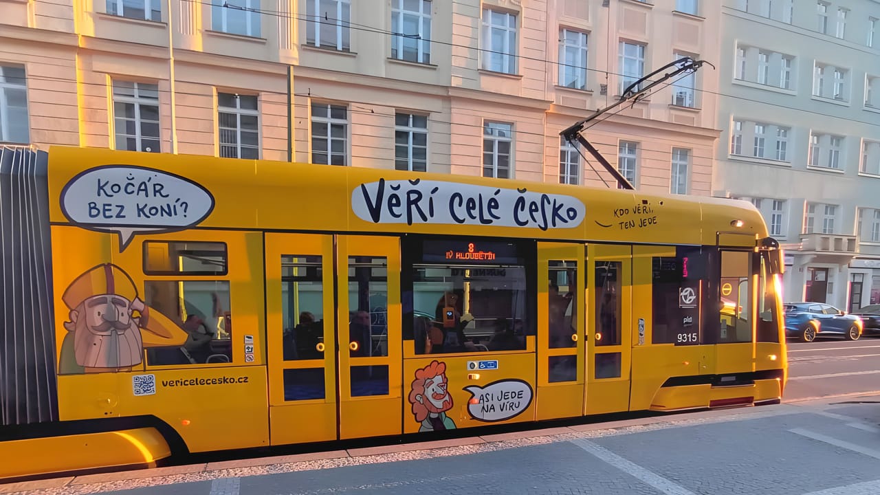 С иронией, юмором и приглашением к размышлению он напомнит о наследии двух выдающихся исторических личностей – Кирилла и Мефодия. Визуальное оформление трамвая создано инициативой «Верит вся Чехия», цель которой – вдохнуть новую жизнь в праздник славянских просветителей. Помимо трамвая, в рамках проекта по всей стране пройдет социологическое исследование, будет показан анимационный фильми созданы специальные программы для школ.