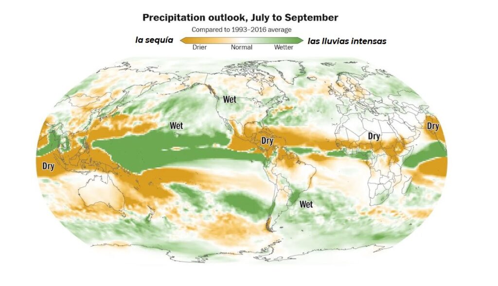 Среди возможных последствий — более частые волны жары в Южной Америке, на юге США, в Африке, Европе и на Ближнем Востоке. Ожидаются сильные засухи в центральной и северной Индии, Карибском бассейне, Индонезии, Австралии, а также в Центральной Африке и Бразилии. В то же время сильные дожди и наводнения могут обрушиться на Перу, Эквадор, север Африки и экваториальные районы Тихого океана. В Тихом океане возрастёт риск ураганов и тайфунов, а в Атлантике активность циклонов, напротив, снизится.