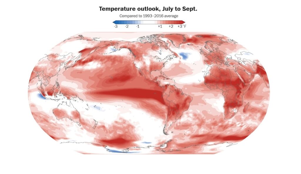 Температура поверхности моря в ключевой зоне Тихого океана может превысить средние значения на 2 градуса Цельсия, а в пике — достичь или даже превзойти рекорд 2,8 градуса, зафиксированный в 2015 году.