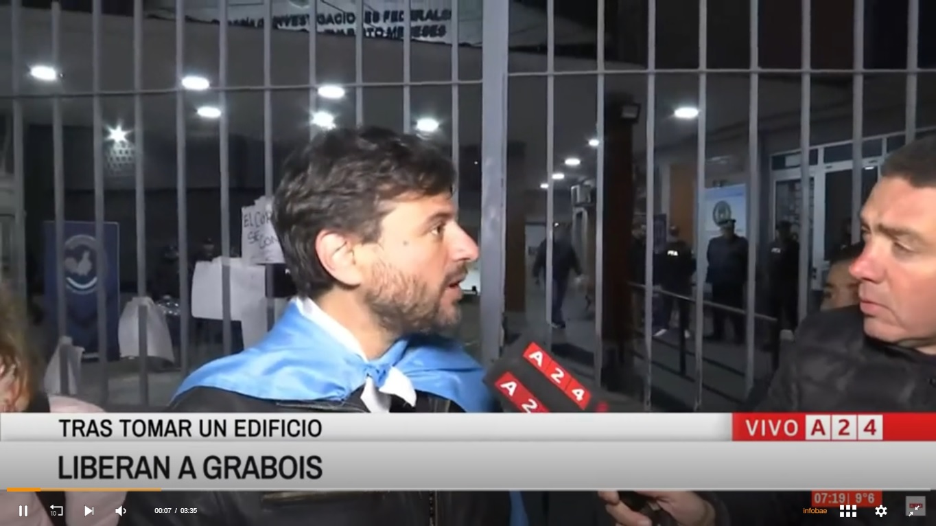В субботу в Буэнос-Айресе лидер Фронта Патрия Гранде Хуан Грабойс был арестован за оккупацию Института Хуана Доминго Перона, закрытого по решению правительства Хавьера Милея. После 12 часов под стражей он был освобожден в воскресенье, заявив в X: «Милей, запри меня, но аргентинский флаг не отнимешь». Акция протеста, сопровождавшаяся столкновениями с полицией, подчеркнула напряженность вокруг перонистского наследия.