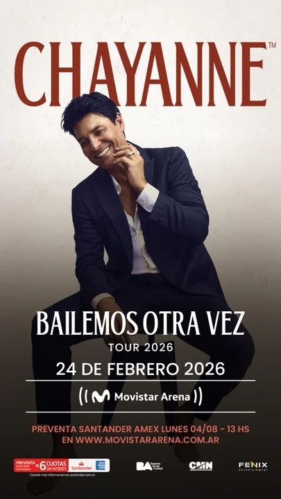 Пуэрториканский артист Чайанне выступит в Буэнос-Айресе 24 февраля 2026 года на Movistar Arena в рамках мирового тура Bailemos Otra Vez Tour, организованного Fenix Entertainment и CMN.