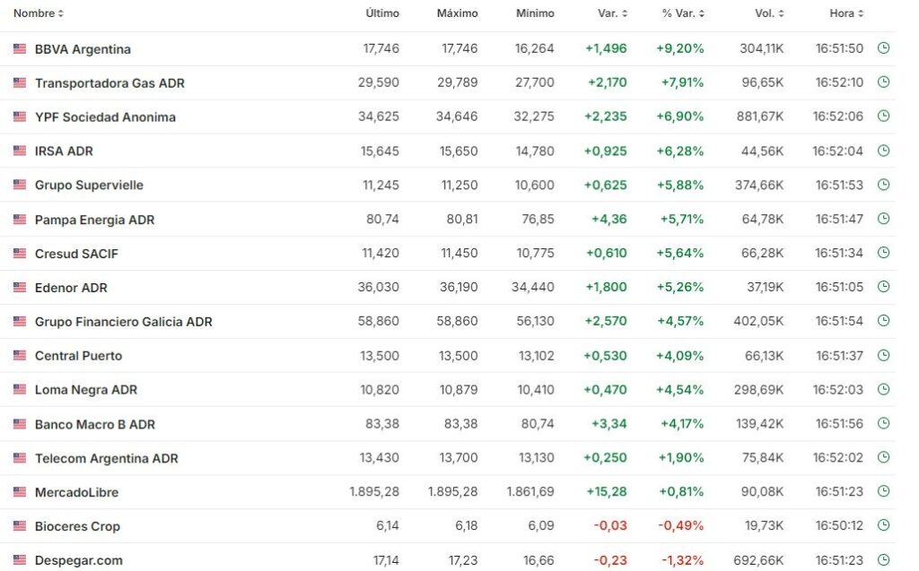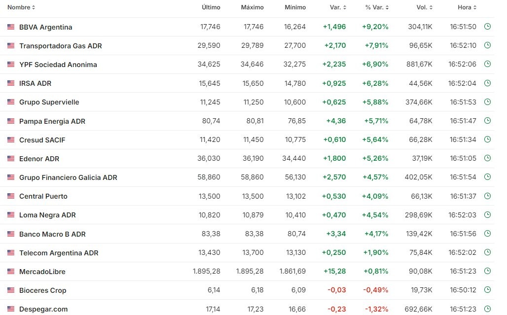 Энтузиазм местного финансового мира проявился в реакции рынка на результаты выборов в США . В отличие от большинства развивающихся стран, в Аргентине облигации резко выросли, а финансовый доллар продолжал падать. Доллар MEP даже превысил $1100, а разрыв с официальным закрылся примерно на 10%.