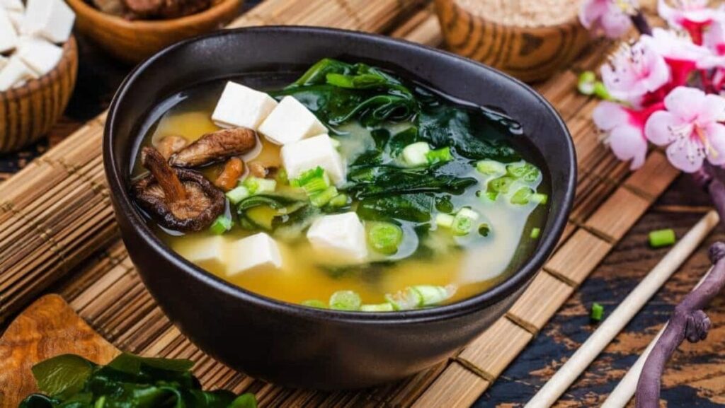 Соя (мисо-суп) содержит изофлавоны, фитоэстрогены и фолат, которые уменьшают симптомы депрессии. Зеленый чай, богатый антиоксидантами, защищает мозг от окислительного стресса. Амати отметила, что вкус умами способствует расслаблению через парасимпатическую нервную систему.