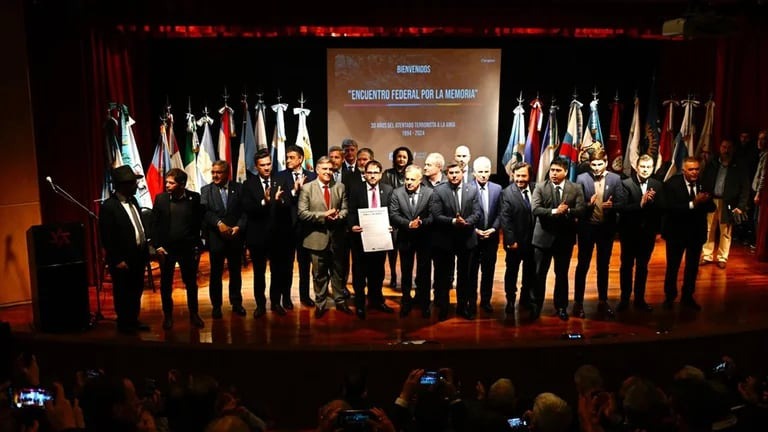 Амос Линецки, президент AMIA, возглавил мероприятие, а губернаторы Аксель Кисильоф (Буэнос-Айрес), Хорхе Макри (CABA), Максимилиано Пульяро (Санта-Фе), Рохелио Фригерио (Энтре-Риос), Освальдо Хальдо (Тукуман) и Альфредо Корнехо (Мендоса) также приняли в нем участие, Клаудио Видаль (Санта-Крус), Херардо Самора (Сантьяго-дель-Эстеро), Марсело Оррего (Сан-Хуан), Густаво Саенс (Сальта), Рауль Халиль (Катамарка), Леандро Здеро (Чако), Серхио Зилиотто (Ла-Пампа) и Клаудио Поджи (Сан-Луис). Между тем, Неукен, Рио-Негро и Мисьонес прислали представителей своих провинциальных губернаторов.